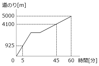 - グラフより 5000 – 4100 = 900 [m] 進むのに 60 – 45 = 15 [分] かかったので、