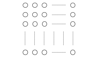 大きな方眼紙があります。その方眼紙のたての線と横の線が交わってできる点を格子点と呼びます。以下の手順にしたがって格子点に白い石を並べ、白い石の置かれた方眼を塗りつぶします。