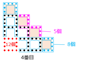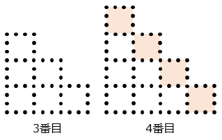 (3)4 番目の図では、ご石は全部で何個ありますか。