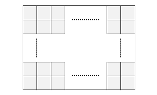 下の図のように、同じ大きさの正方形のタイル 300 枚を、すき間なくしきつめて、長方形をつくりました。周囲のタイルは 66 枚です。長方形の長いほうの辺には、何枚のタイルがしきつめられていますか。