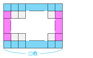 長方形の長いほうの辺に □ 枚のタイルがあるとすると、短いほうの辺にあるタイルは、