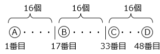 また、カードを左から A、B、C、D の順に並べると、下の図のようになる。