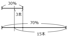 70 % – 30 % が、15 本 – 3 本 となるので、