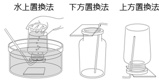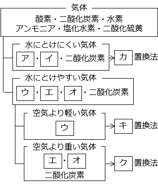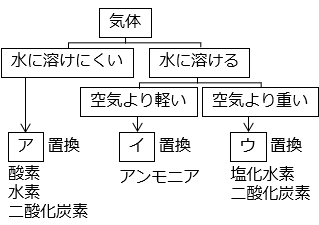 ア:水上置換 ⇒ 水に溶けにくい気体を捕集する方法