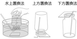 - ウ:上方置換 ⇒ 空気より軽い気体を捕集する方法