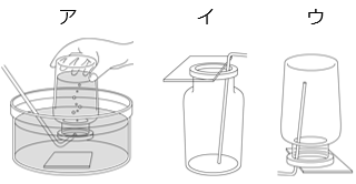 ① 発生した二酸化炭素を集気びんに集める方法として適さないのはどれですか。ア~ウから選びなさい。