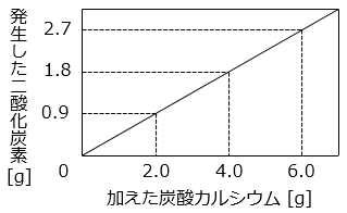 - 加えた塩酸の体積と発生した気体の体積は比例しているので、