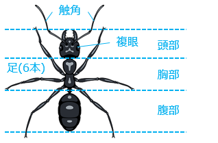 ※足が 8 本あるクモは昆虫ではない。