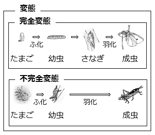 - ア:変態 イ:完全変態 ウ:不完全変態
