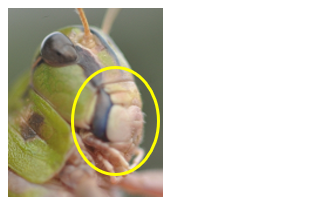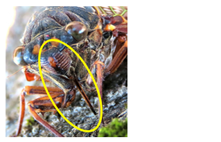 (1)昆虫の体は、\(\boxed{ア}\) 部、\(\boxed{イ}\) 部、\(\boxed{ウ}\) 部の 3 つの部分にわかれています。