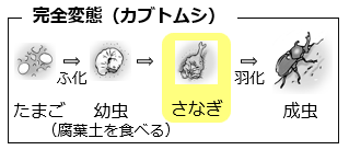 - ア:【カブトムシの幼虫】