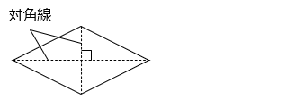 - ひし形の面積は 対角線 × 対角線 ÷ 2 で求められる。