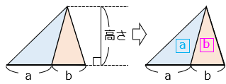 底辺の等しい三角形の面積は高さの比と等しい。
