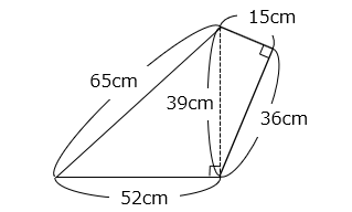 (5)2 組の直角三角形をつなぎ合わせて四角形を作りました。この四角形の面積を求めなさい。