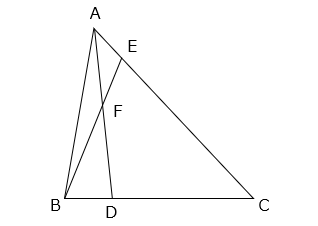 (1)点 D は辺 BC を 1:3 に分けた点で、点 E は辺 AC を 1:5 に分けた点です。三角形 AFE の面積が 5 cm2 のとき、三角形ABCの面積を求めなさい。
