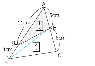 △ADE = \(\boxed{1}\) × \(\dfrac{5}{11}\) × \(\dfrac{11}{15}\) = \(\boxed{\dfrac{1}{3}}\)