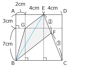 部分の面積 ( □BFEG ) は、△BEG と △BEF の和である。