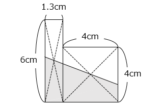 太線で囲まれた長方形の面積と、 の面積が等しいとき、太線で囲まれた長方形の縦の長さは何 cm ですか。