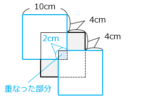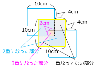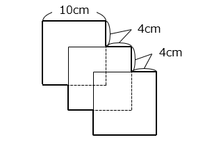 1 辺 10 cm の正方形の紙を縦横 4 cmずつずらして 3 枚重ねました。
