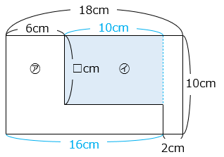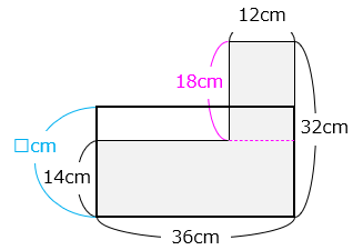 太線で囲まれた長方形の縦の長さを □ cm とする。