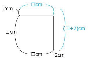 もとの正方形の1辺の長さを □ cm とする。