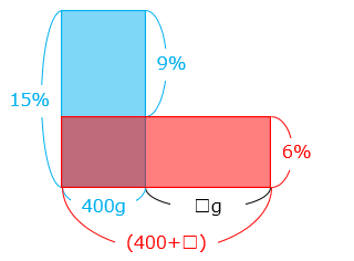 含まれている食塩の量は 400 × 0.15 = 60 [g]
