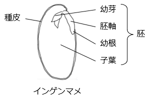 - インゲンマメの種子は無胚乳種子である