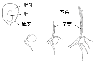 ② 有胚乳種子が発芽のための養分をたくわえています。