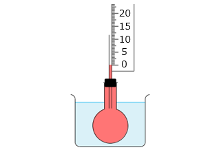 例2 棒温度計はガラス管の中に色をつけたアルコールによって温度を測定する。