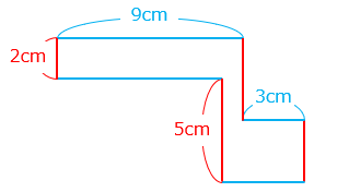 ( 9 + 3 ) × 2 + ( 2 + 5 ) × 2 = 38 [cm]
