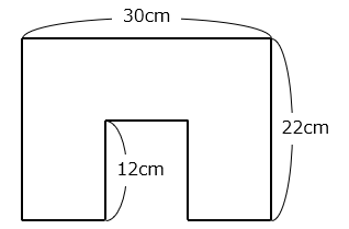 1辺20cmの正方形を図にように切り取った周りの長さを測ると92cmになりました。□ の長さが同じとき □ の長さを答えなさい。角はすべて直角とします。