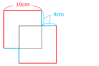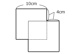 1辺10cmの正方形の紙を縦横4cmずつずらして重ねました。太線の長さは何cmになりますか。